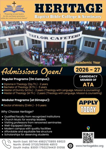 The mission of Heritage Baptist Bible College and Seminary is to equip servant leaders for life and ministry to reach Southeast Asia for Christ. We will accomplish this by providing quality theological training, practical experience and discipleship in the context of a local church, and ongoing mentoring. We are a local-church-focused Bible college and seminary.